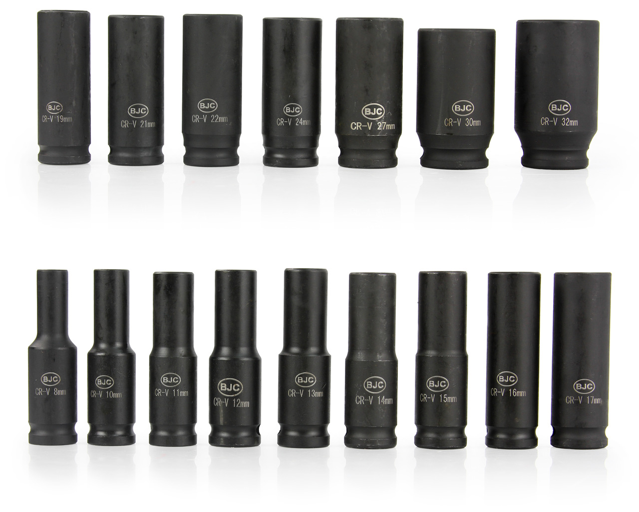 ZESTAW NASADKI UDAROWE NASADOWE DO KLUCZ PNEUMATYCZNY 1/2” 8-32mm 16el BJC Marka BJC