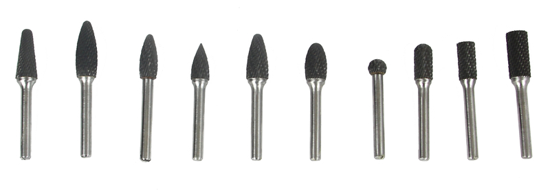 Zestaw pilników obrotowych z węglika wolframu. Idealnie nadają się do kształtowania, wygładzania i usuwania materiałów takich jak:
