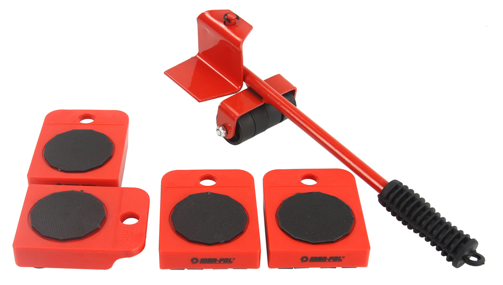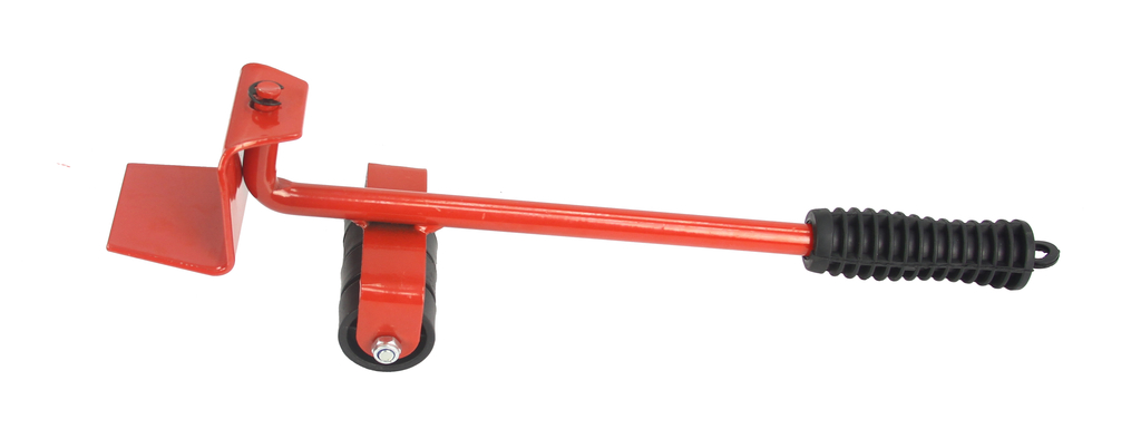 Unieść krawędź, narożnik czy podstawkę mebla za pomocą metalowej dźwigni, następnie wsunąć rolkę oraz opuścić ładunek.