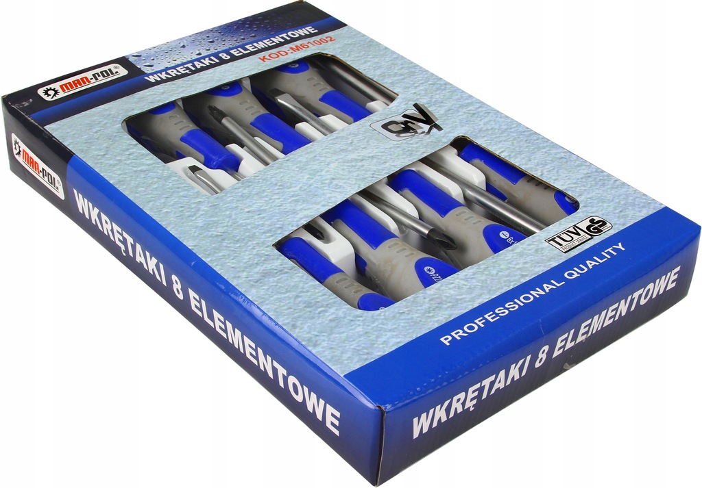 Zestaw ośmiu wkrętaków renomowanej marki MAR-POL wykonanych ze stali chromowo-wanadowej (CrV).