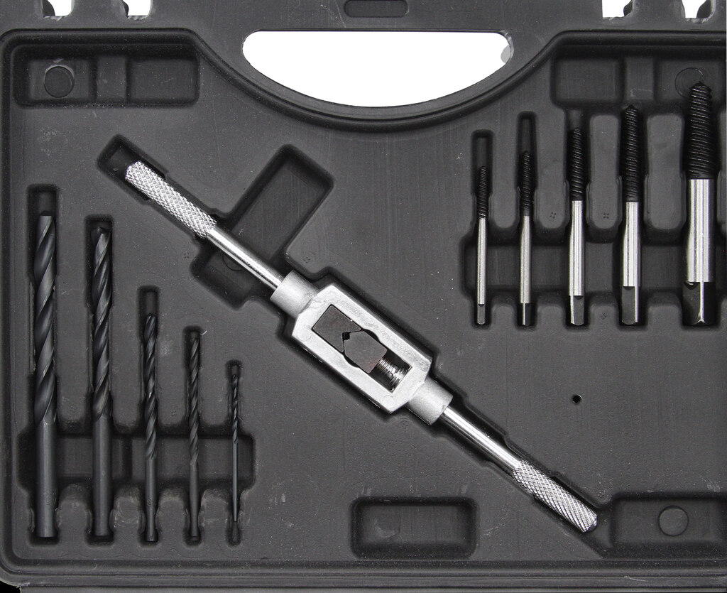 Uniwersalny 26-częściowy zestaw wykrętaków przeznaczonych do odkręcania śrub, szpilek i nakrętek.