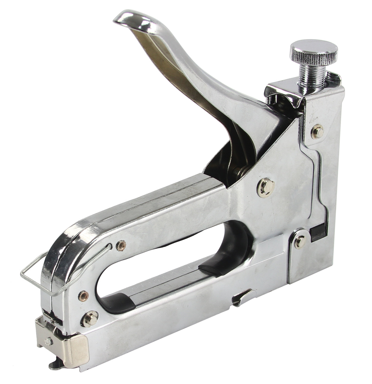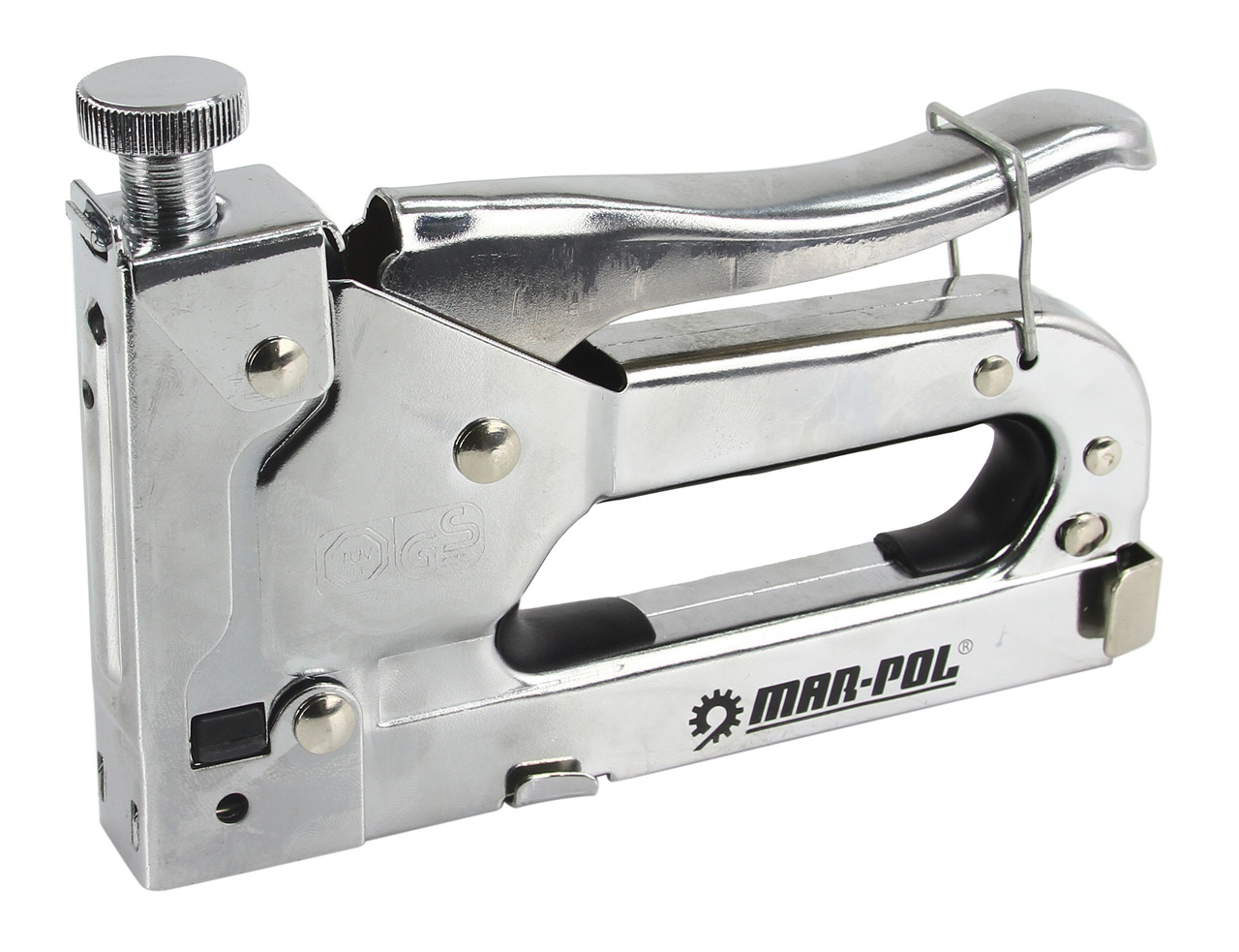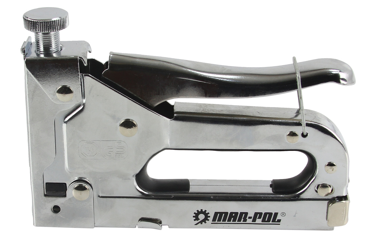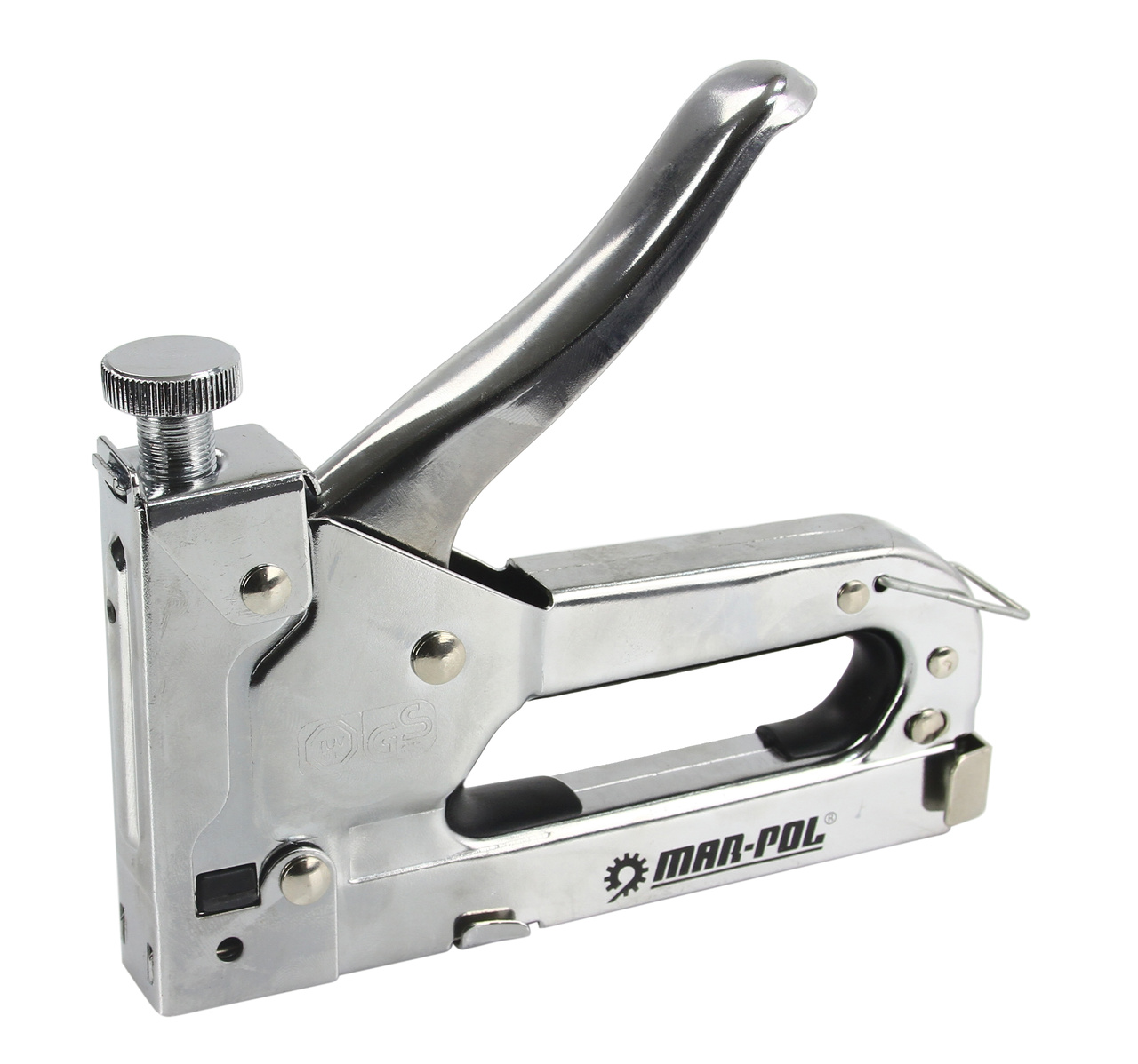 Uniwersalny zszywacz o szerokim zastosowaniu, wyposażony w uchwyt pozwalający zawiesić zszywacz w dowolnym miejscu.