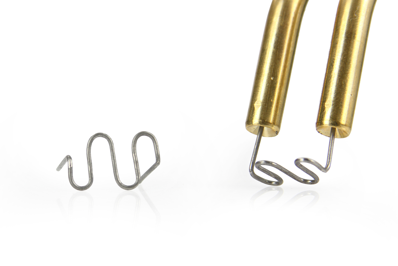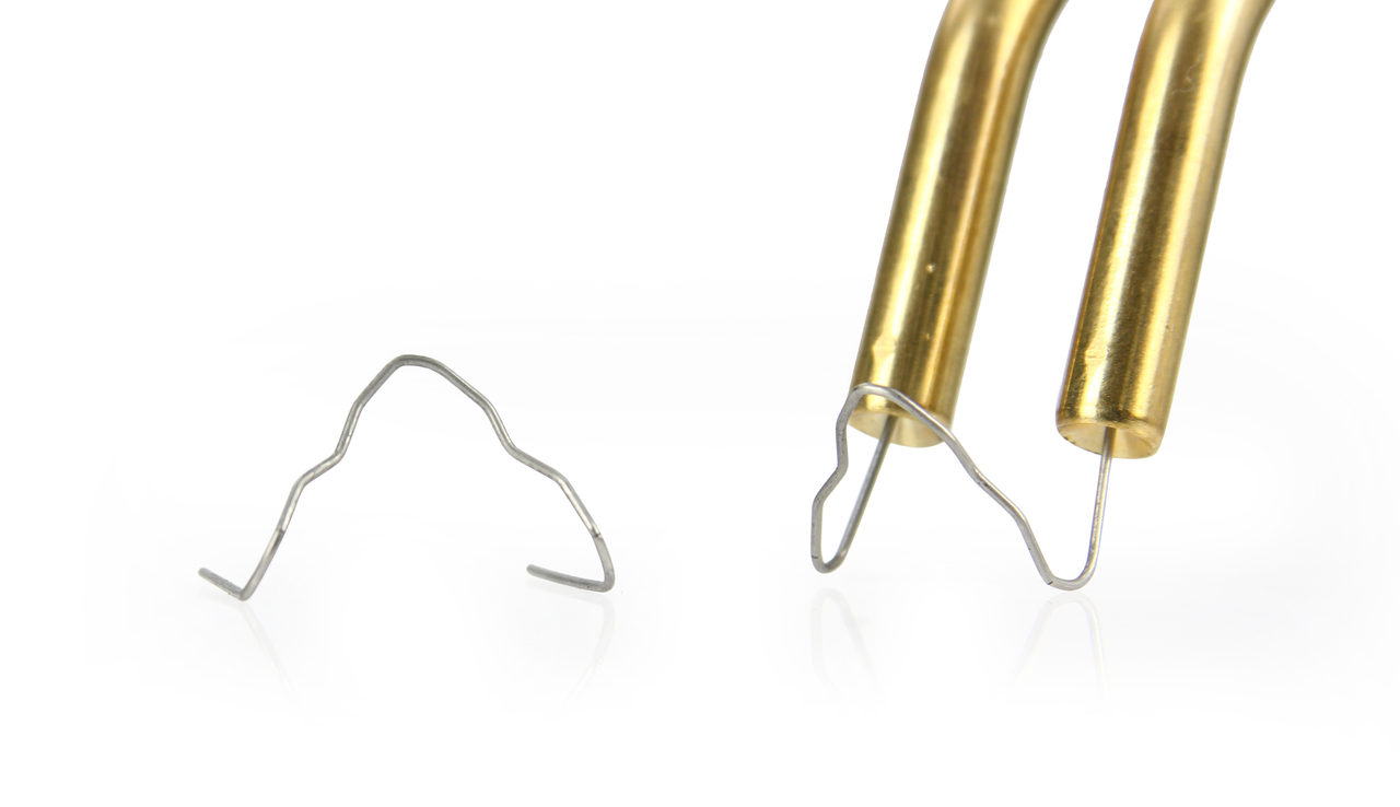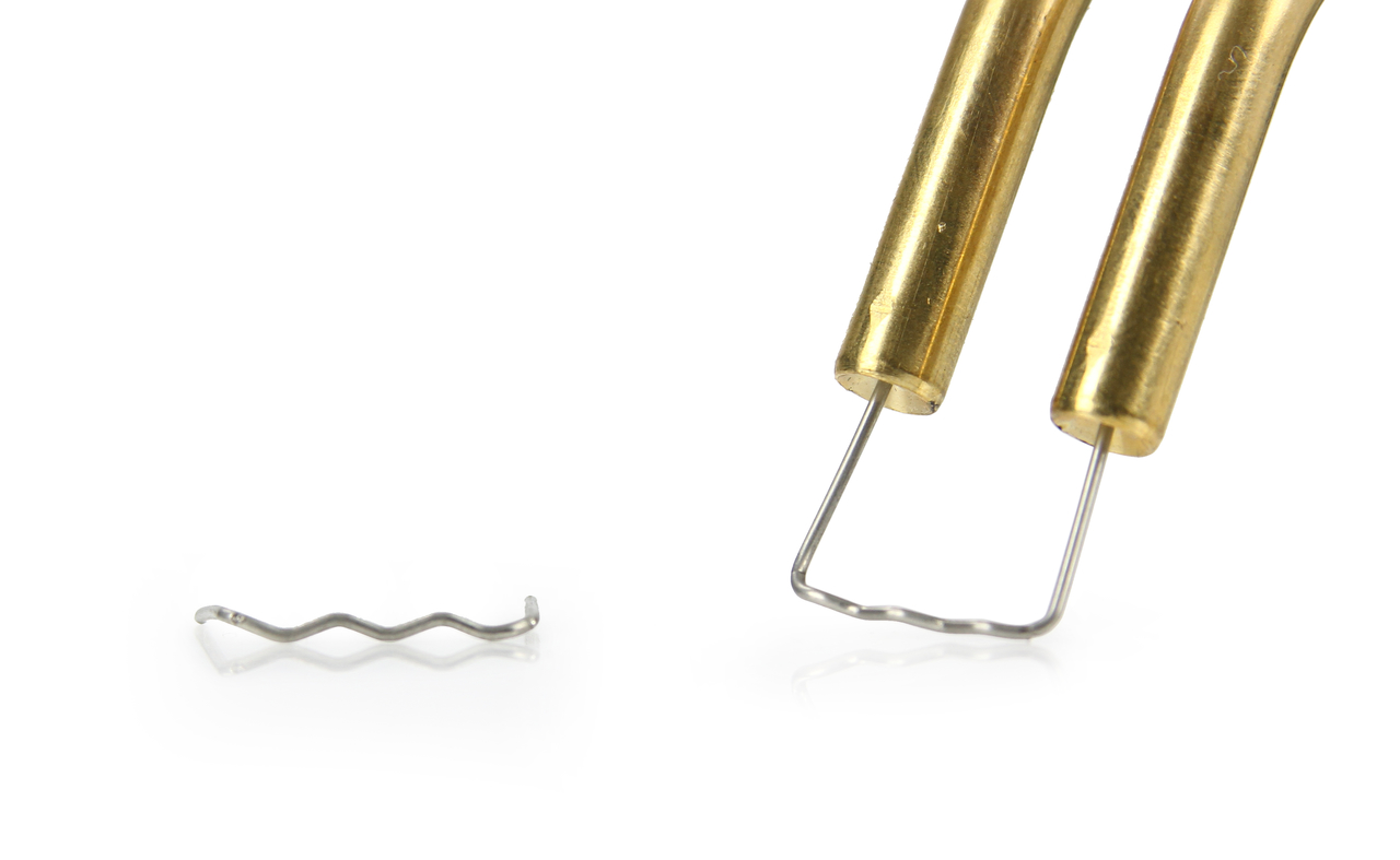 - Zszywka do plastiku ”duża fala”– do najbardziej wymagających i wytrzymałych połączeń. Jej sinosuidalny kształt zapewnia największą siłę łączenia. Nadaje się również do okrągłych przedmiotów.